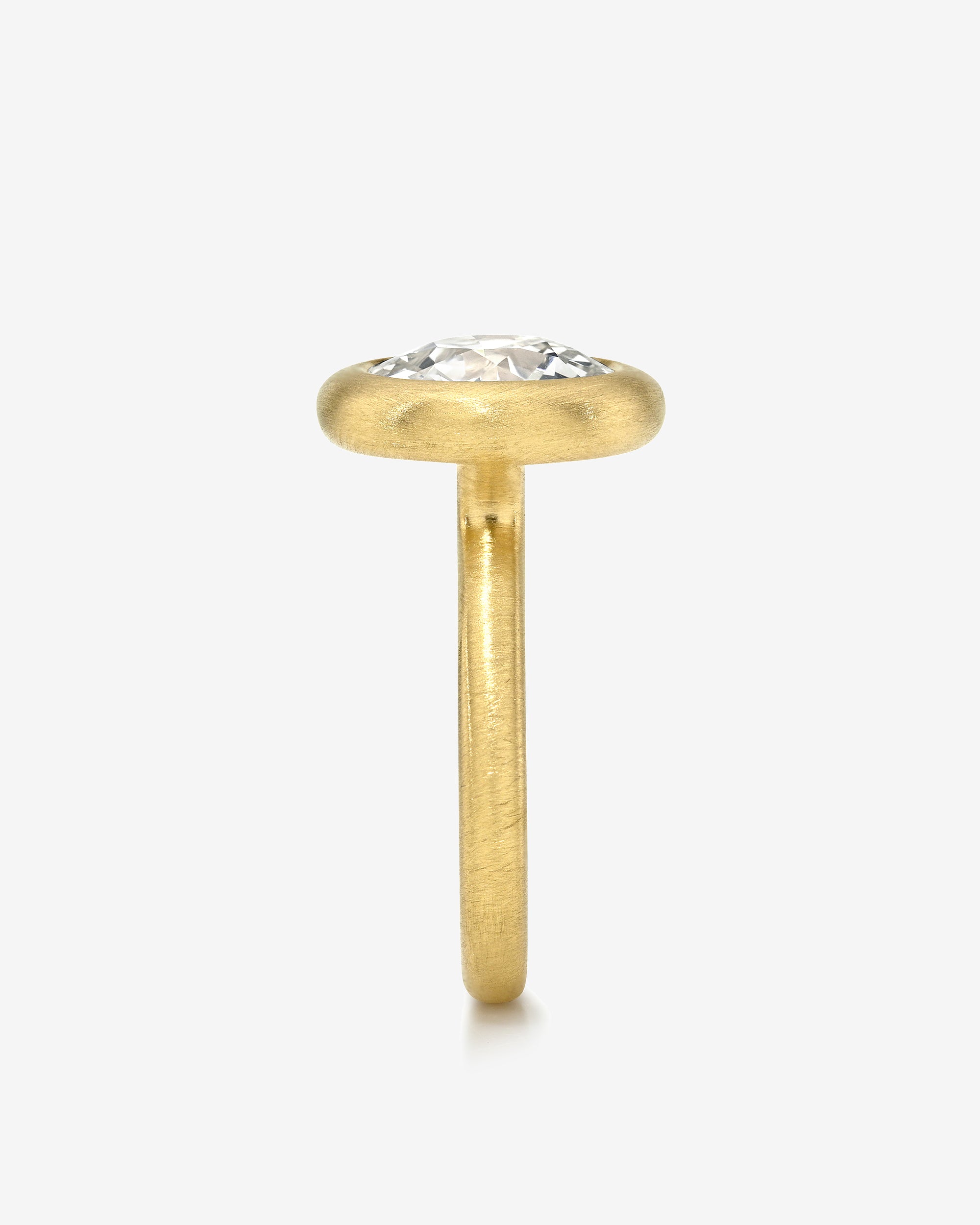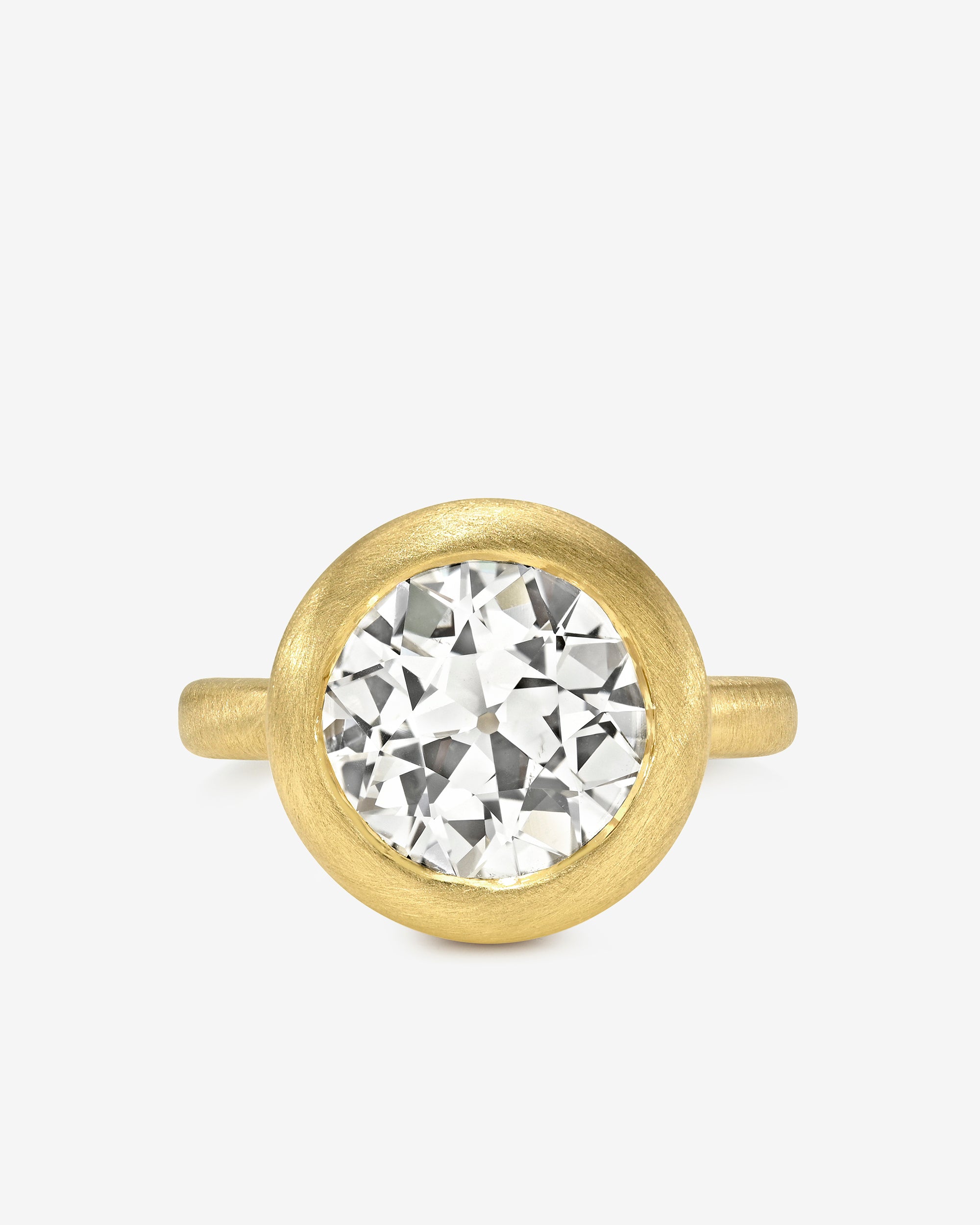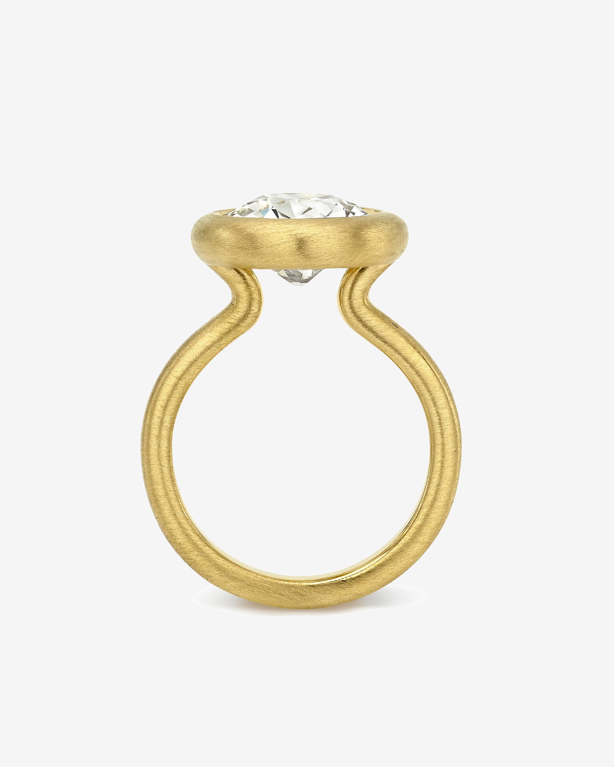Pictured with a 3ct Old European cut diamond, 22k satin finish yellow gold