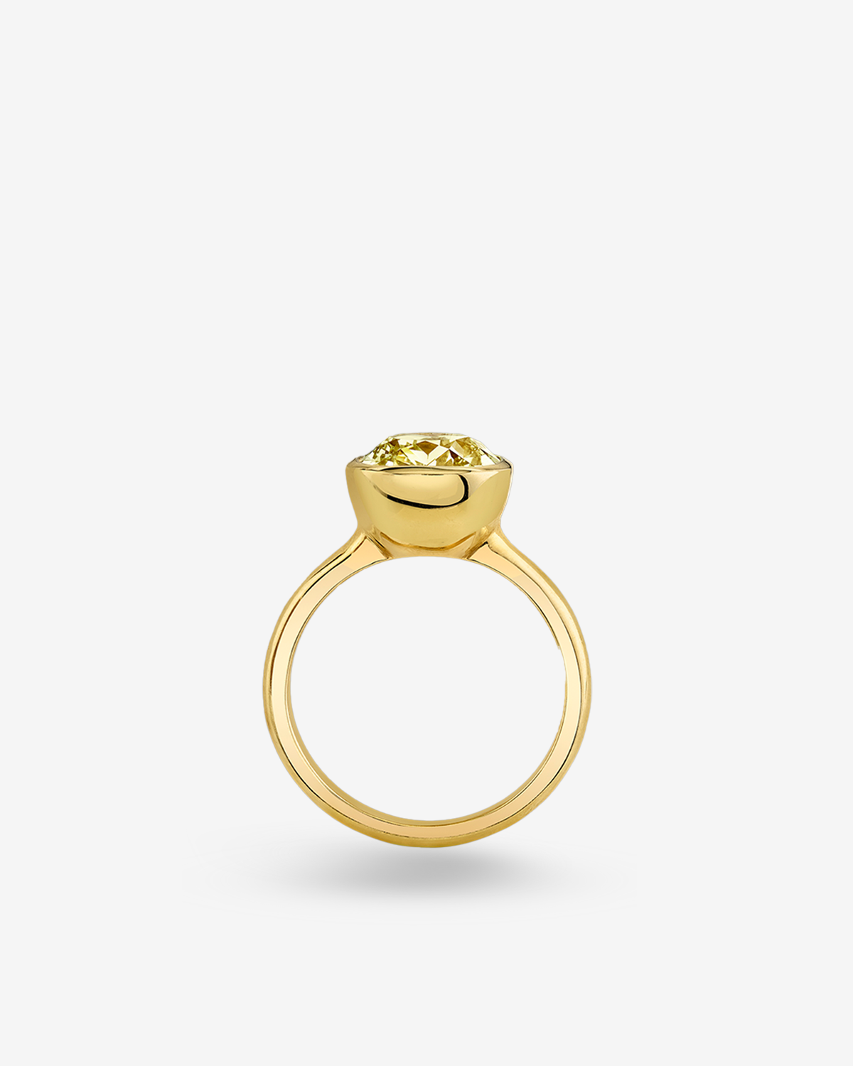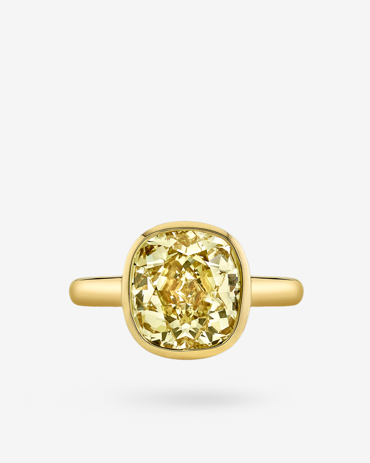Cushion Cut Fancy Yellow Diamond in a handmade cup setting