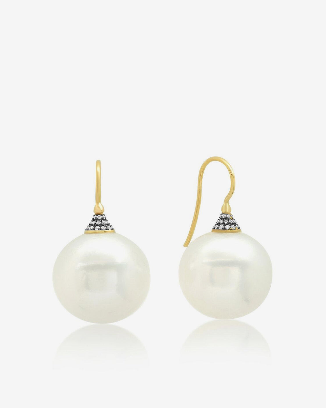 The Full Moon Earring is our bold take on a classic and must-have piece. South Sea pearl earrings boast 17mm jumbo pearls on a pavé diamond cap, and a French hook.