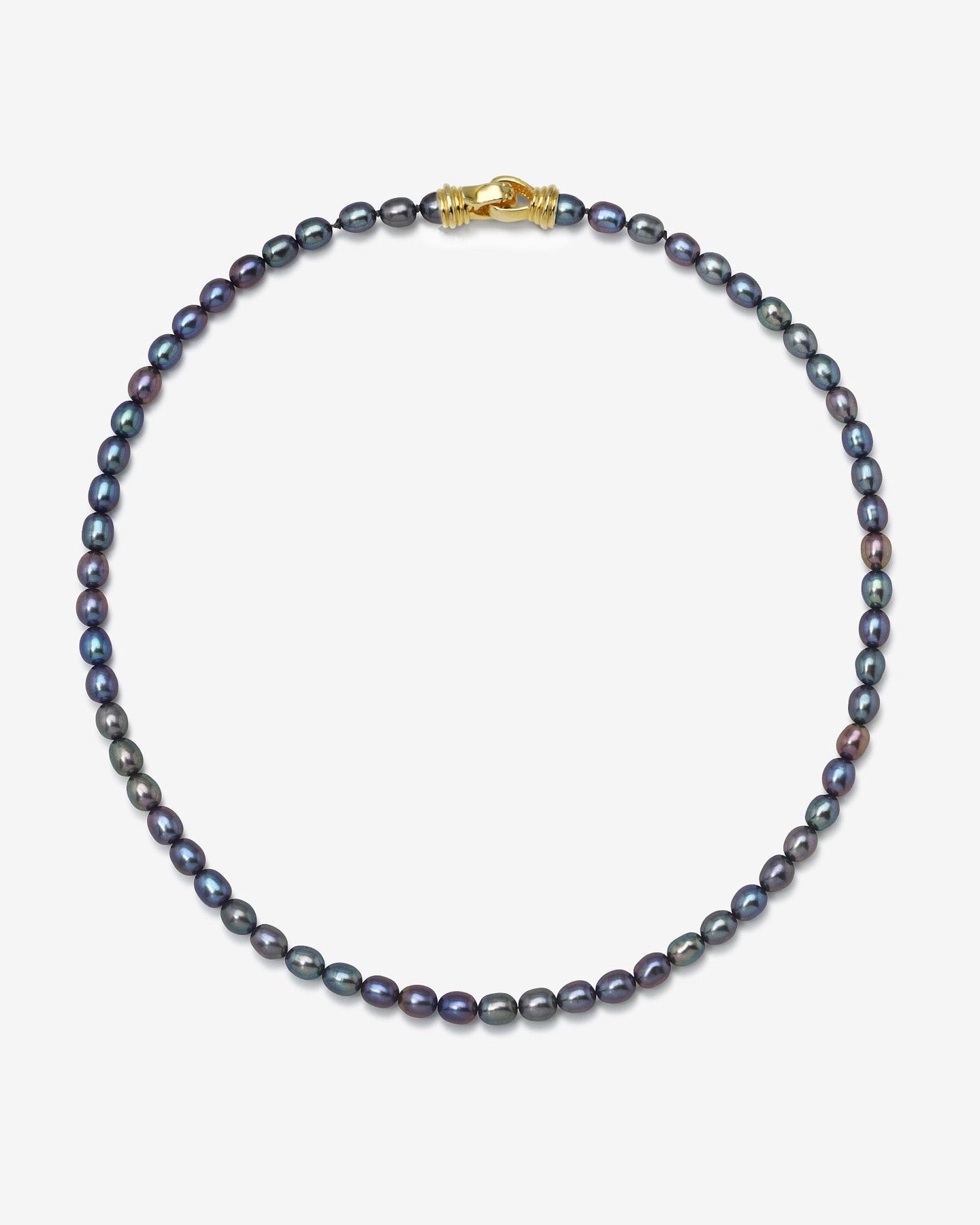 Cultured Rice Pearl strand necklace. Decorative clasp can be worn in front as a charm holder.