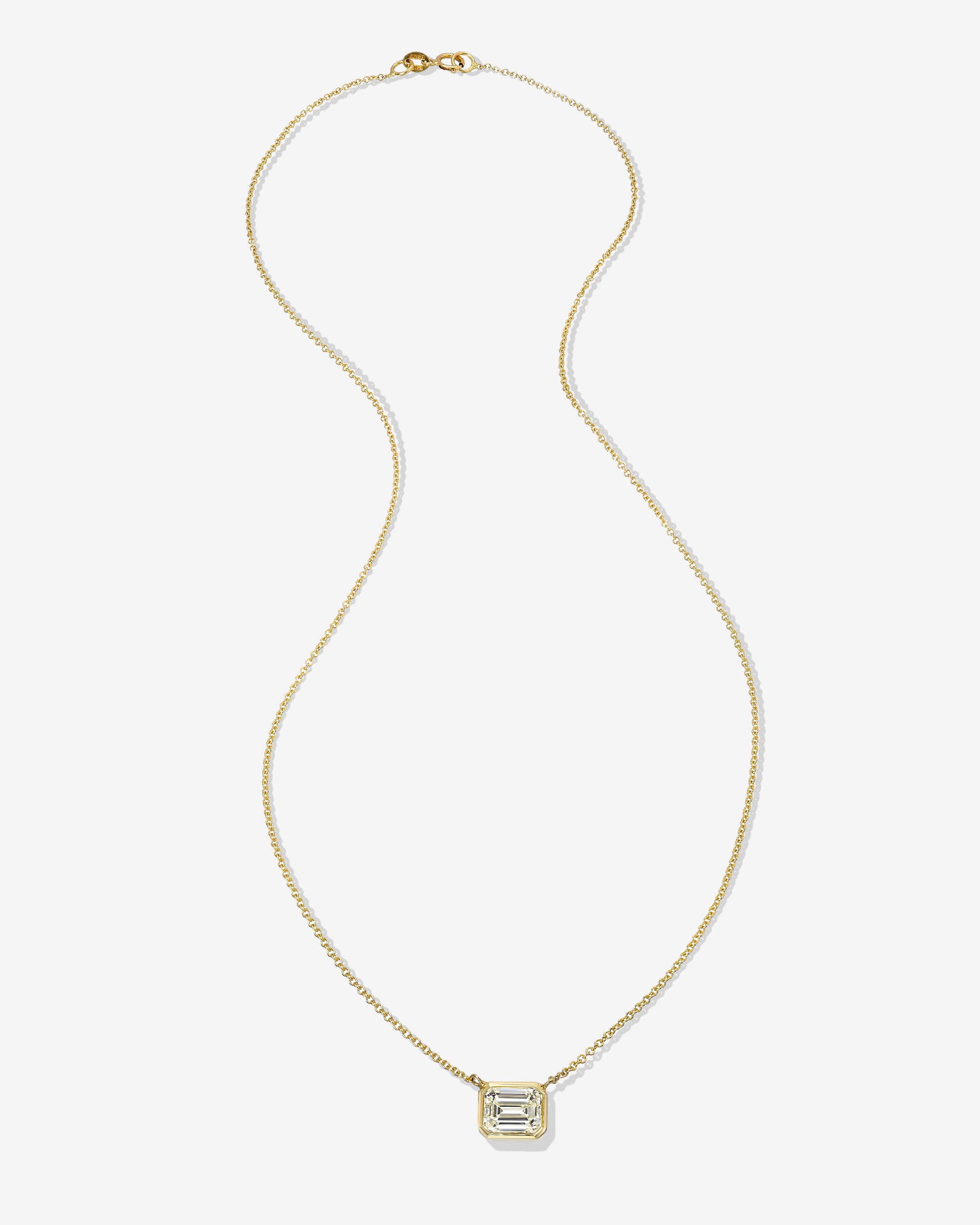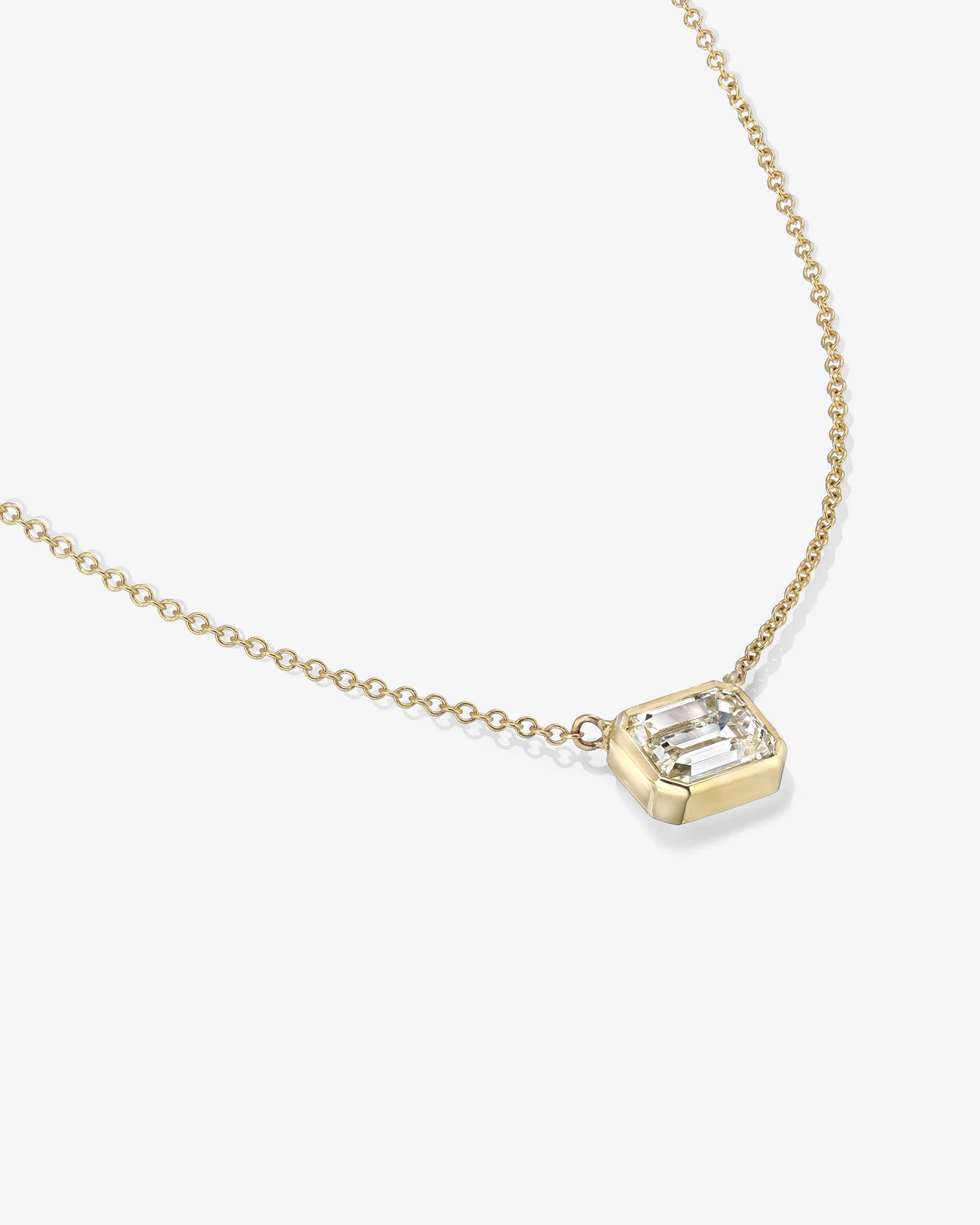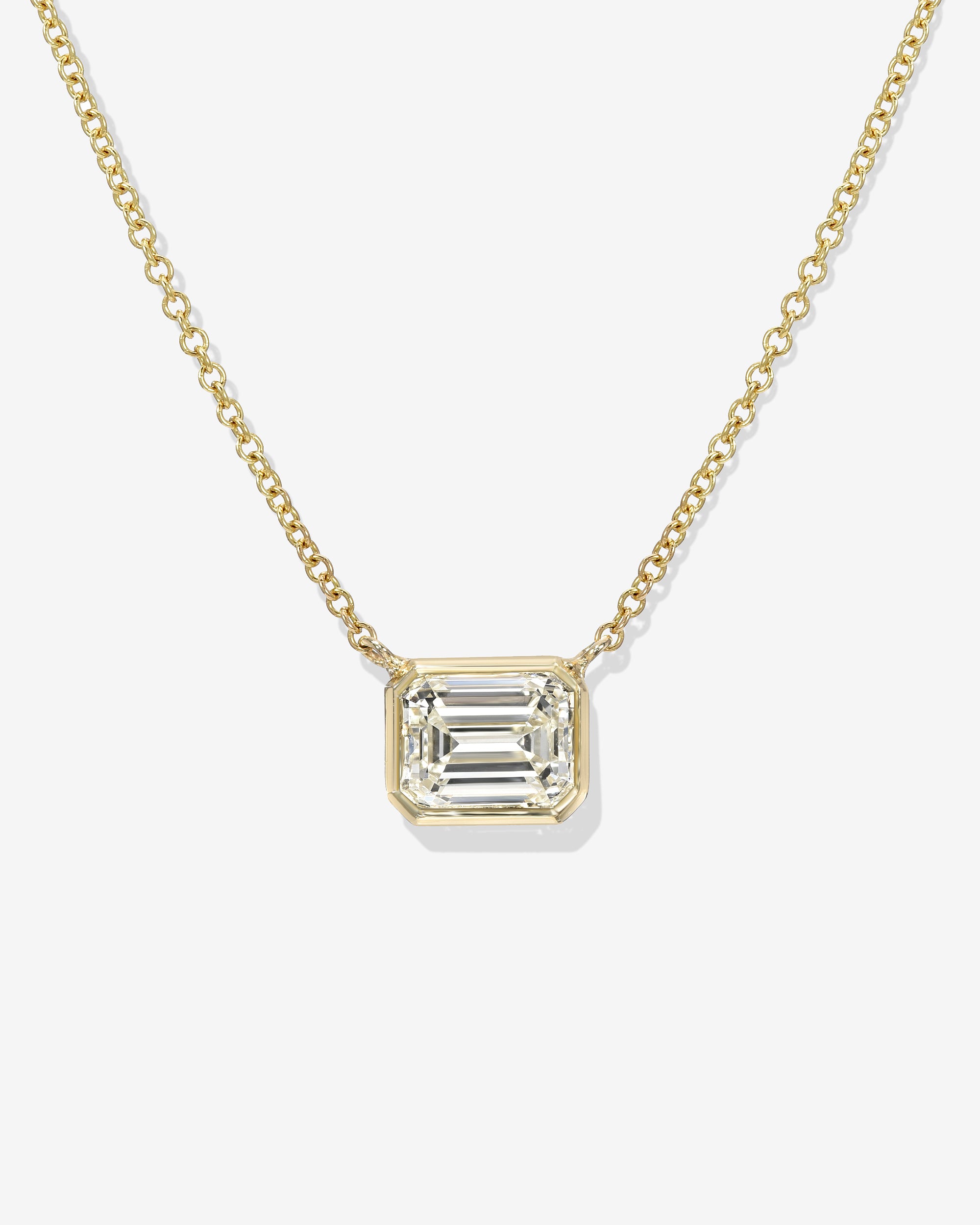 Floating diamond bezel set necklace on delicate rolo chain
