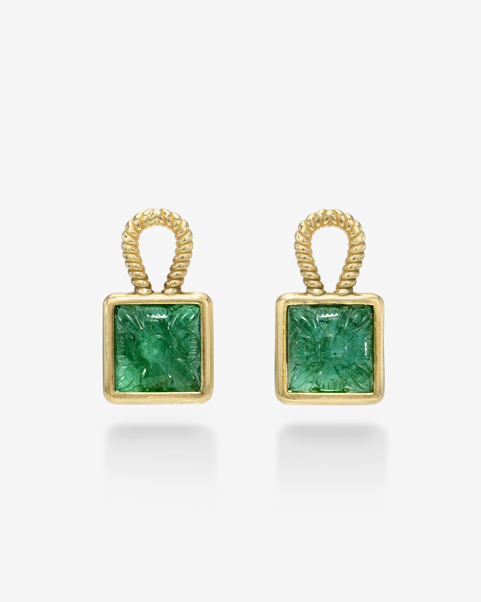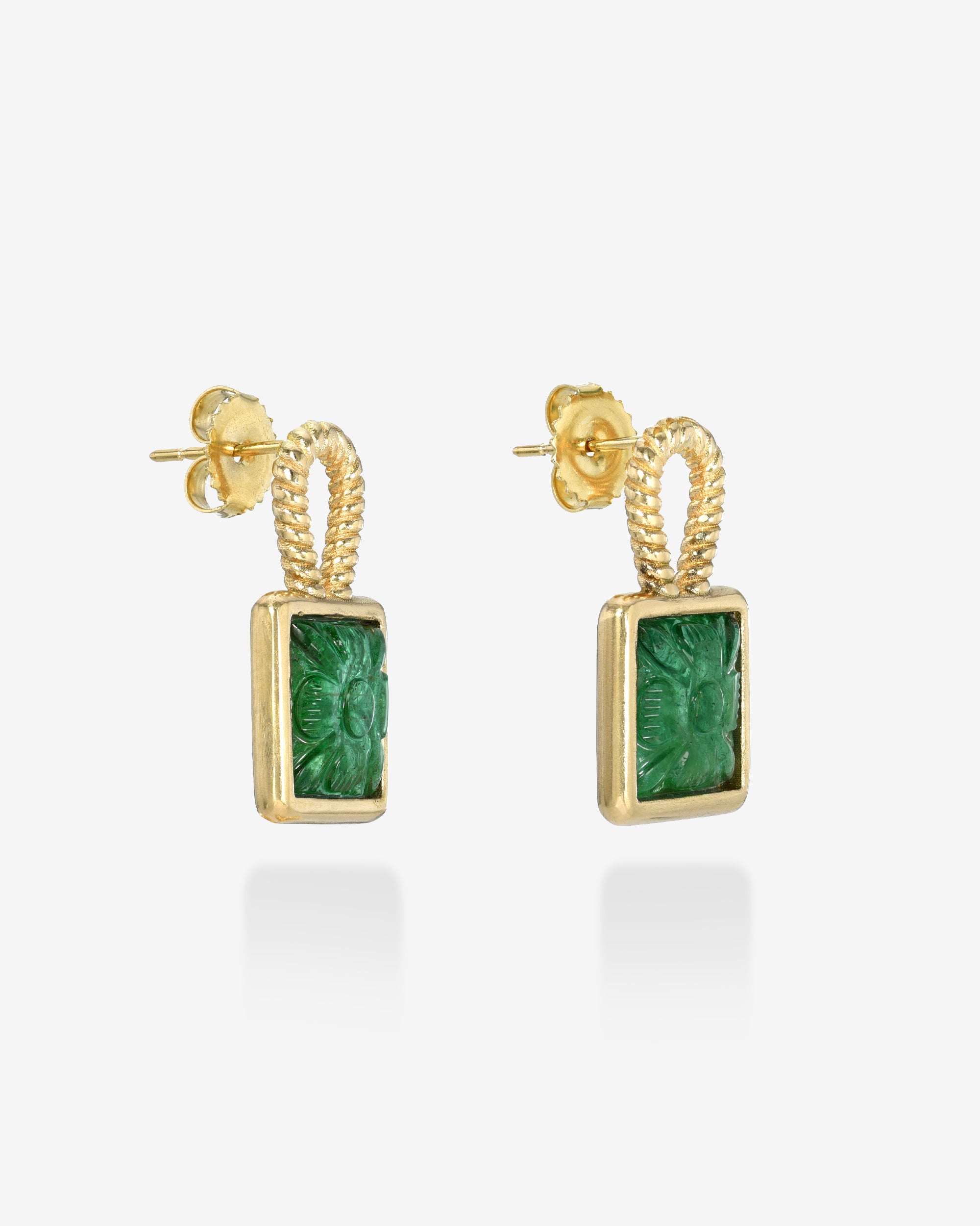 A delicate Lotus flower hand carved on a cabochon emerald. Lotus flowers symbolize purity and enlightenment. Pair with matching Lotus Emerald Necklace.