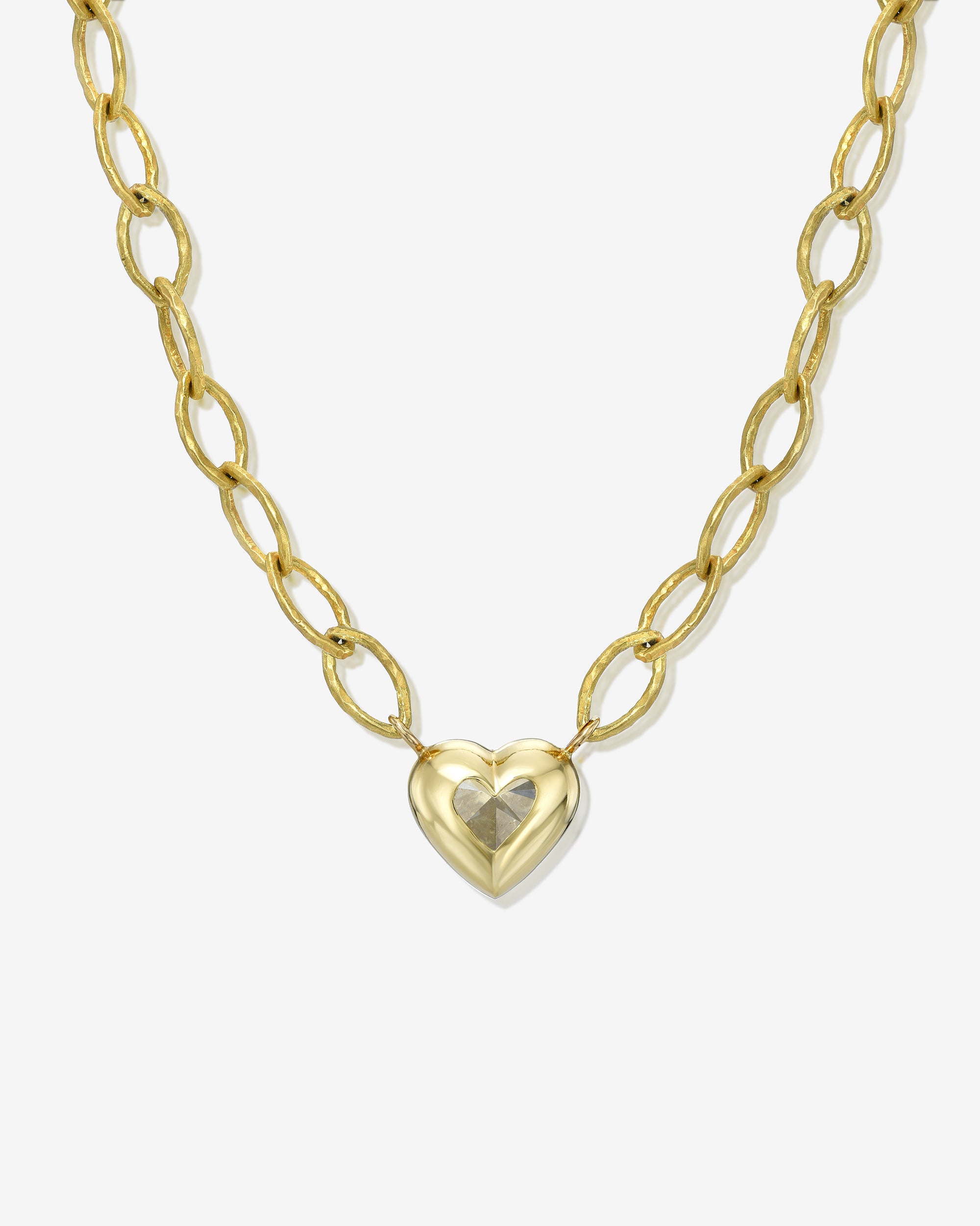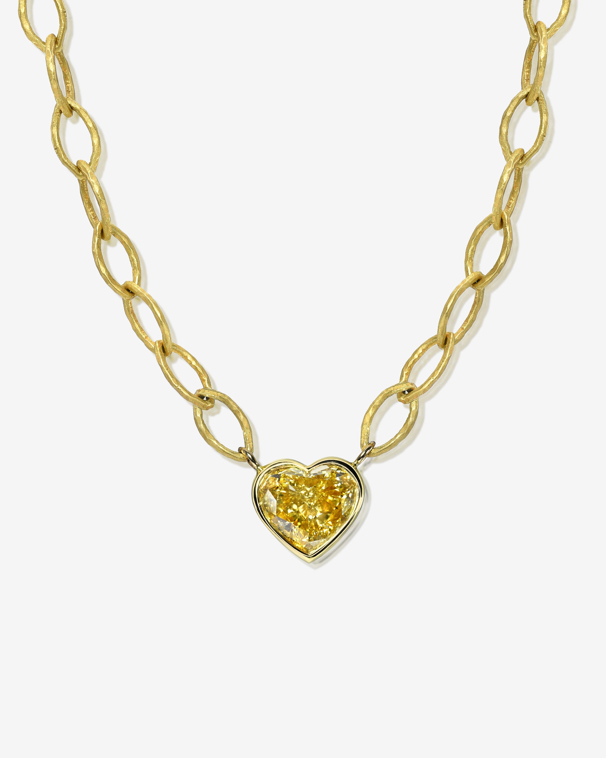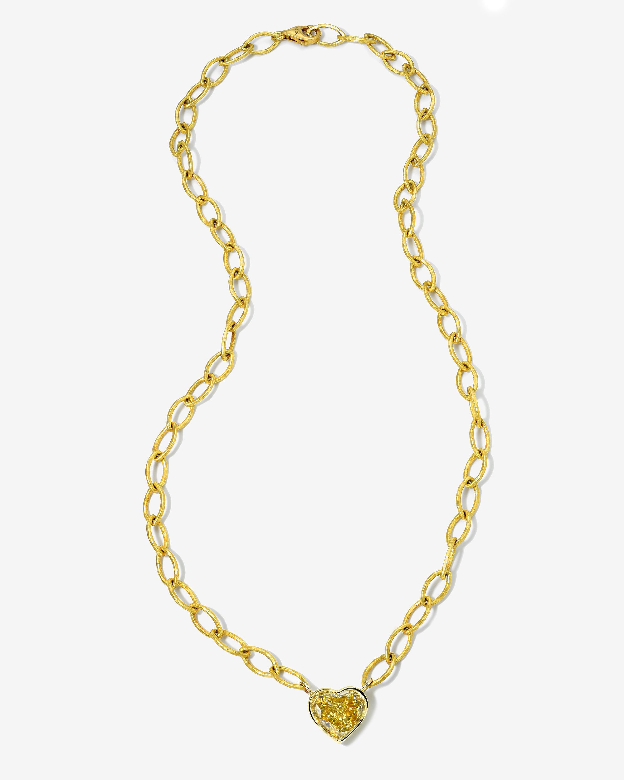 Yellow heart bezel set in a smooth cupped setting with a small heart cut out at the back.
